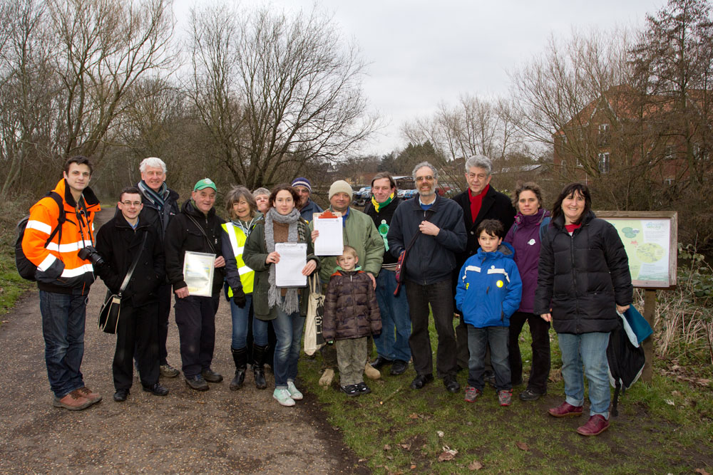 Then matters took a turn for the worse. Cabinet member for resources, Cllr Cliff Jordan, agreed to the land being put up for sale at auction as it was ‘surplus to requirements’. A petition was raised objecting to the sale of the public land. This achieved nearly 2,000 signatures within a matter of weeks, and was handed in at both City Hall and County Hall in April 2013. Friends of Train Wood and Marriott’s Way was formed to campaign to ensure that the wood stayed in public hands. The wood was abruptly withdrawn from sale just days before the auction was due to take place.
