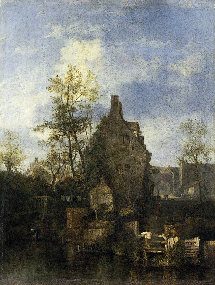 The River Wensum, Norwich by John Crome. c1814. The scene is looking up towards the St Crispin’s bridge and shows some of the dying works along the river.